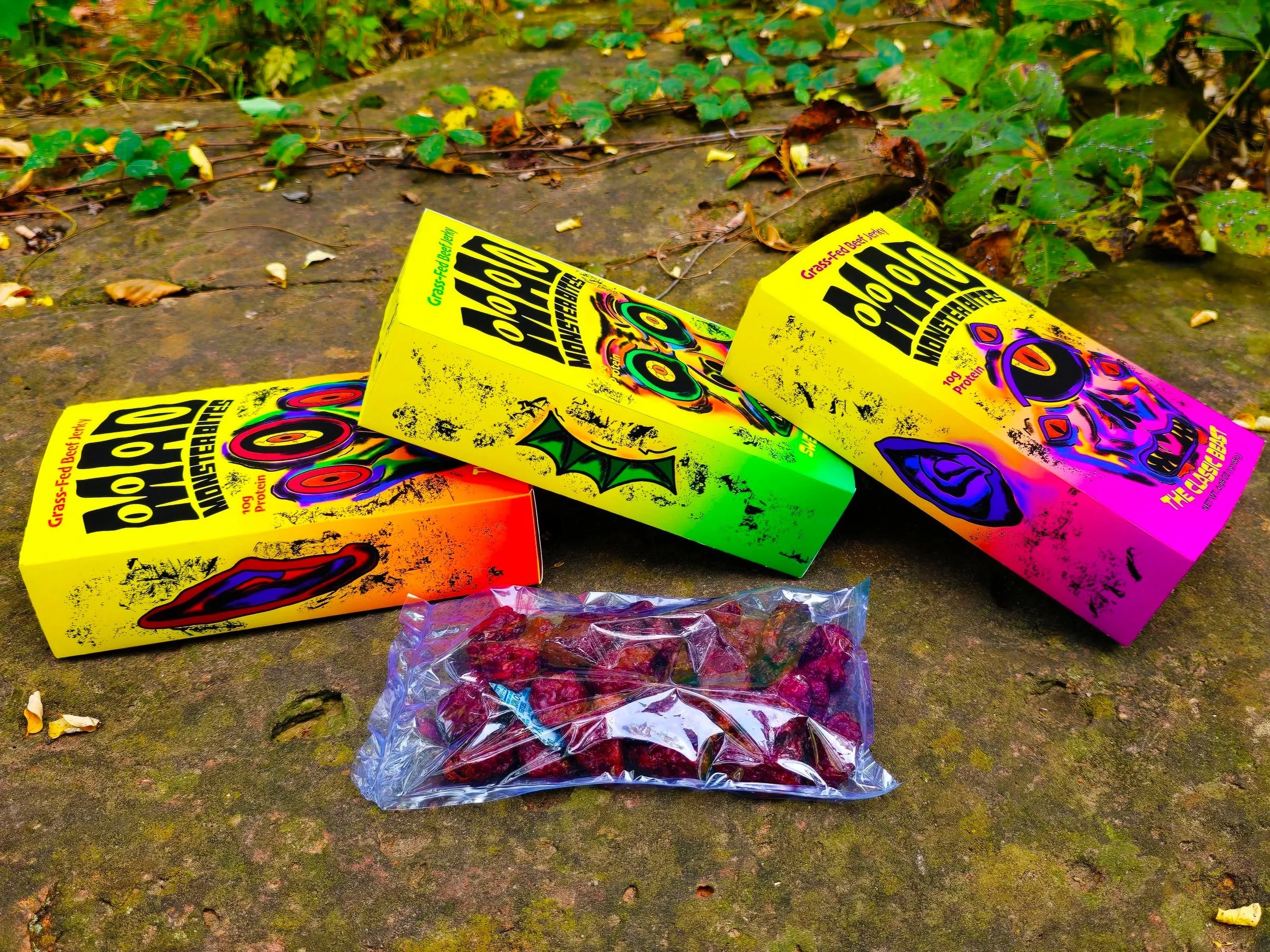 Humans turn into wild, kooky beasts when they’re hungry. Beef jerky is the only thing that tames the monster inside. Each flavor is represented by its own beastly mascot.